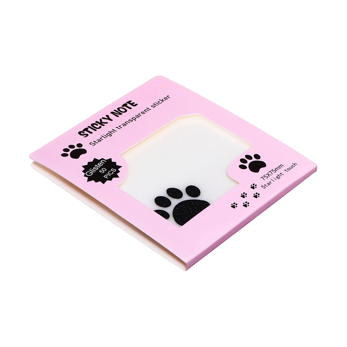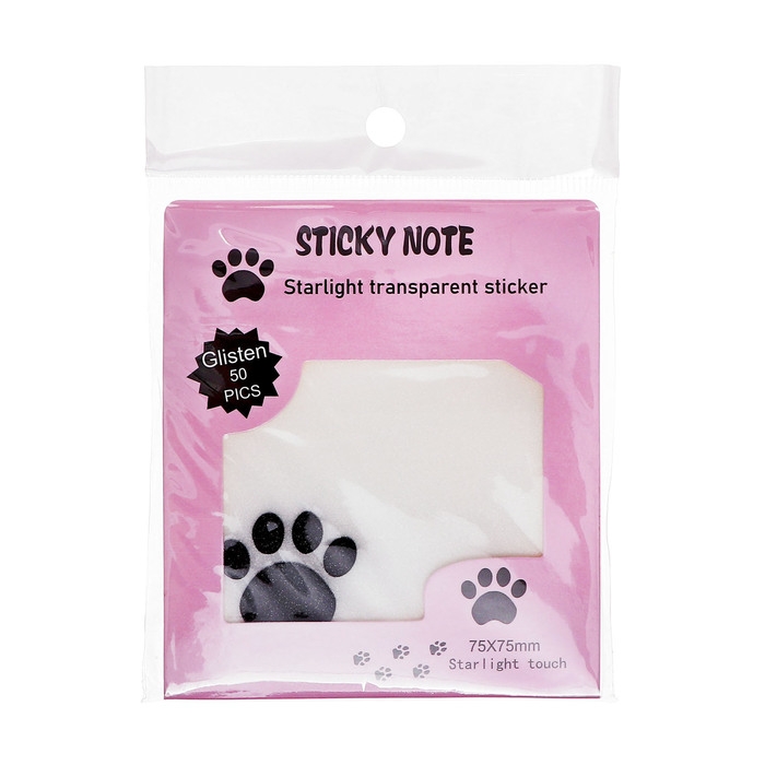 Блок с липким краем 75мм х 75мм 50л пластик прозрачные с блестками Кошачья лапка