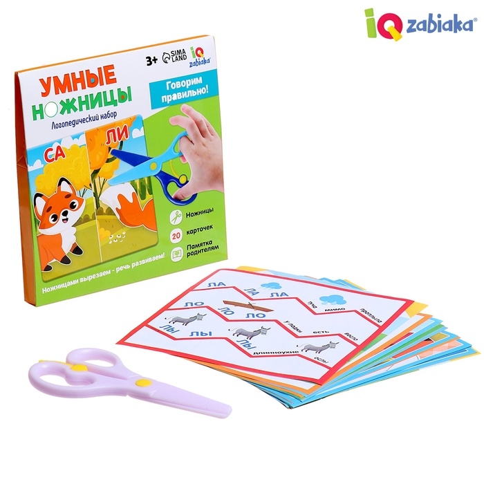 Логопедический набор «Умные ножницы», 20 карточек, 3+