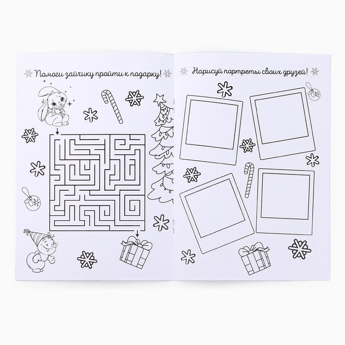 Подарочный набор новогодний блокнот-раскраска, трафареты, наклейки и восковые мелки «Подарок для тебя»