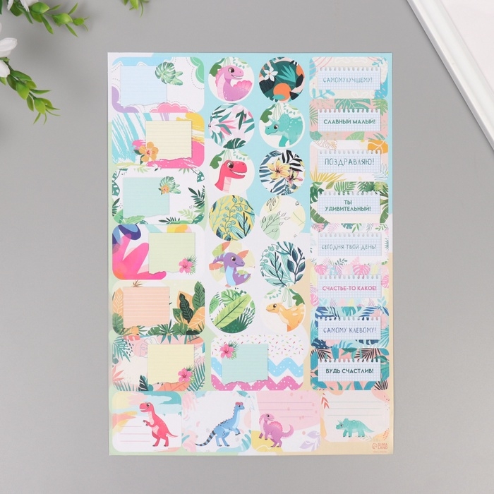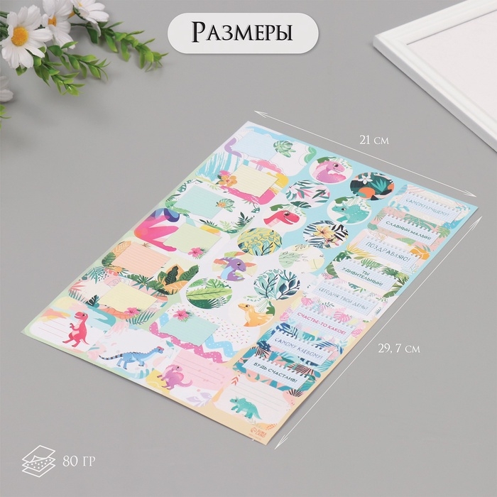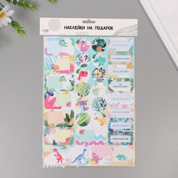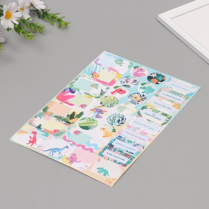 Наклейки на подарки "Динозаврики" 21х29,7 см