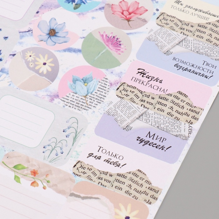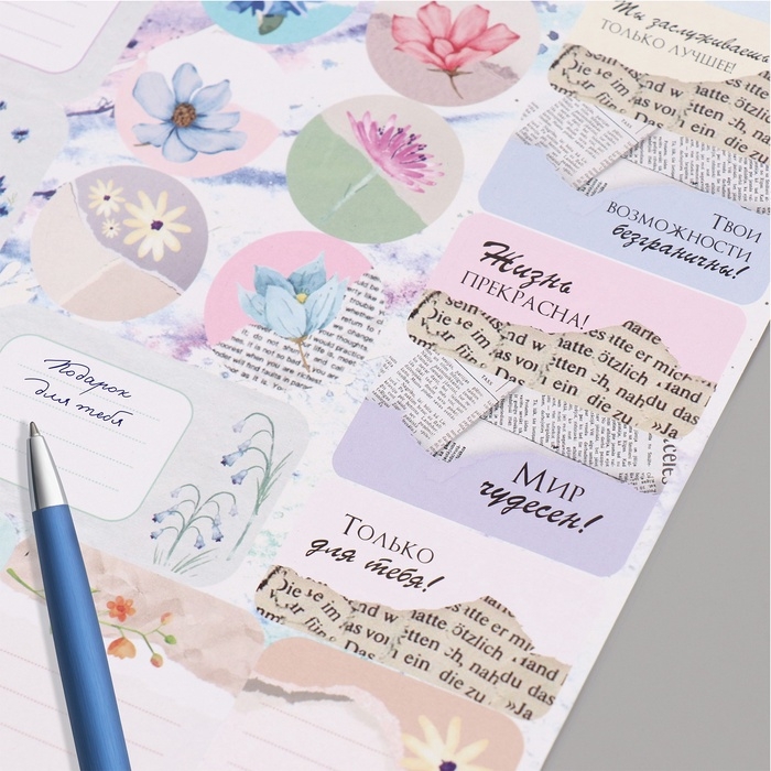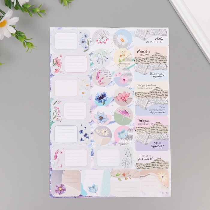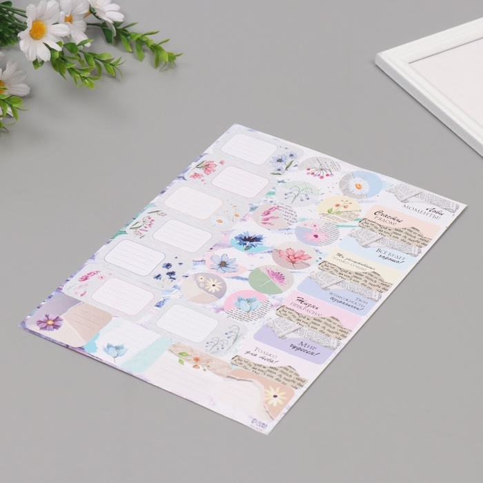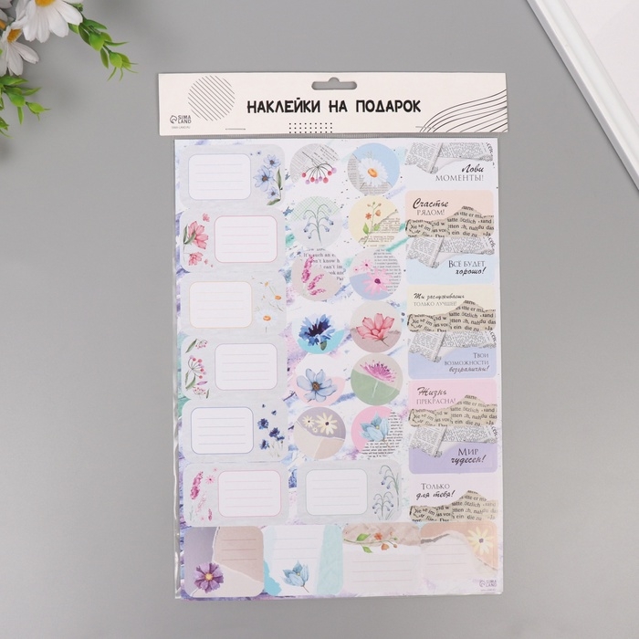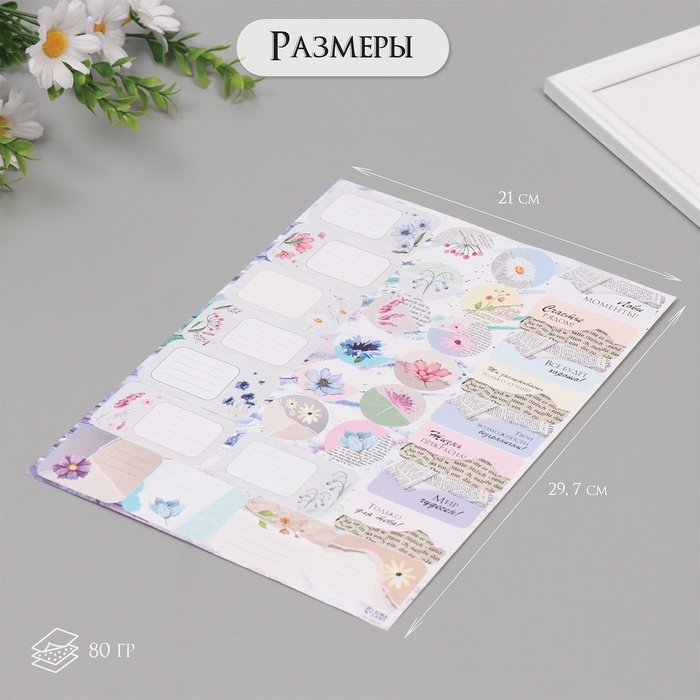 Наклейки на подарки "Цветы и газеты" 21х29,7 см