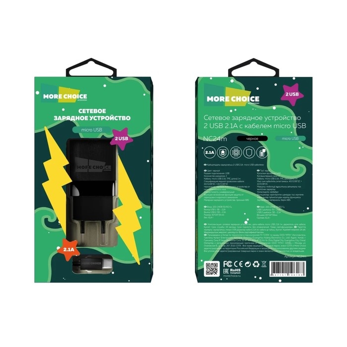 Сетевое зарядное устройство More choice NC24m, 2.1А, кабель micro USB, черный