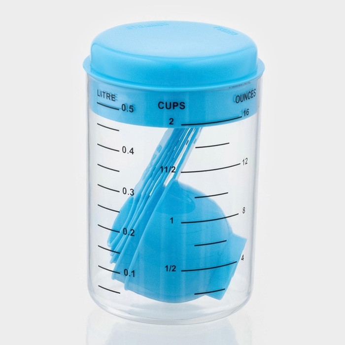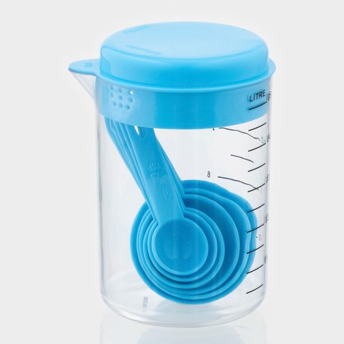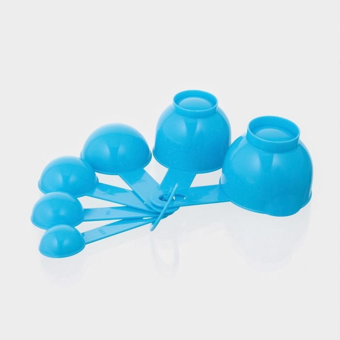 Набор мерных ёмкостей «Маэстро», 7 предметов: стакан 500 мл, ложки, цвет голубой