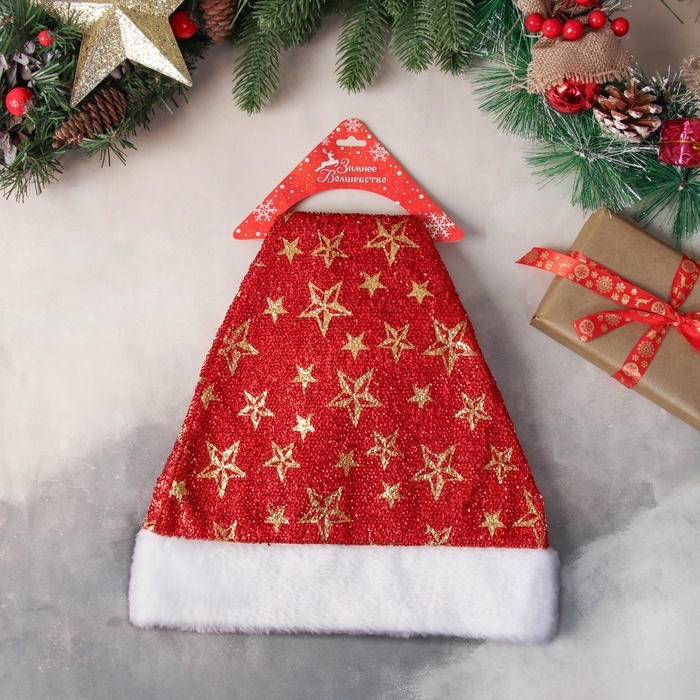 Колпак новогодний "Звёздный момент" 29х37 см, красный