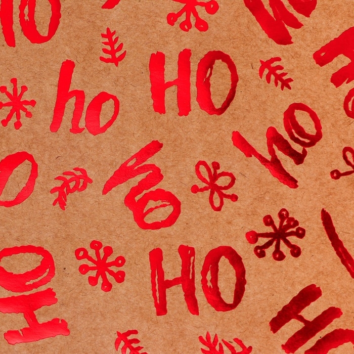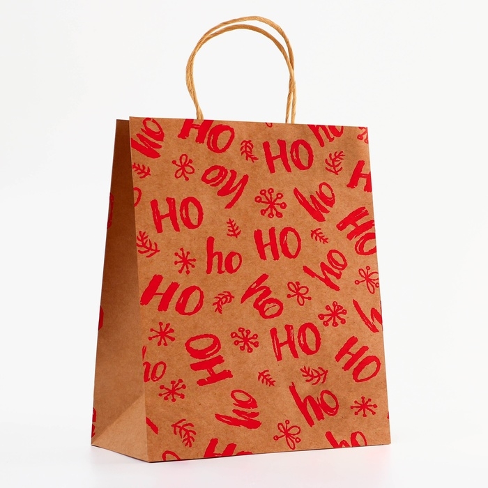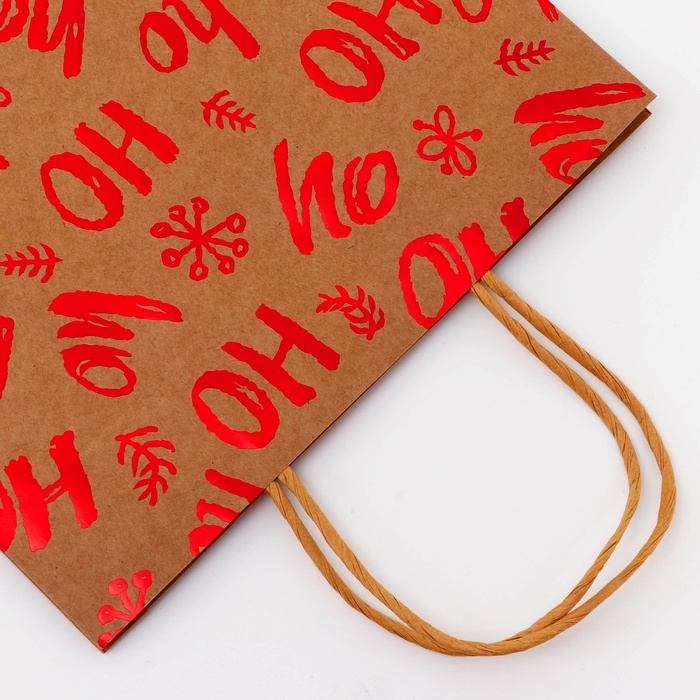Пакет крафт с тиснением, круглая ручка, "Хо-Хо-Хо" 33 х 25 х 12 см, 120 г