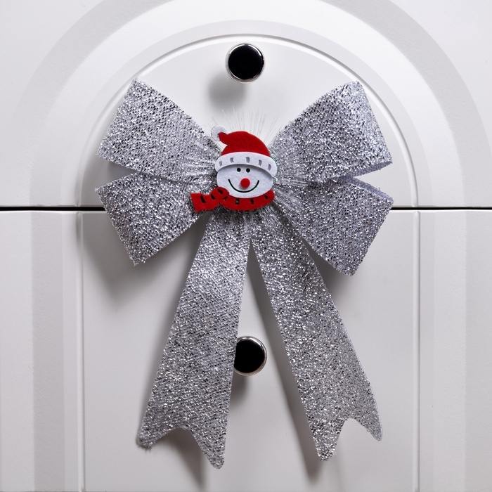 Световой бант "Снеговик бантик" 24x32 см, 1 LED, батарейки LR44x2 (в комплекте), мерцание, свечение мульти