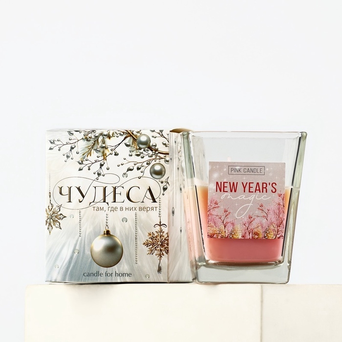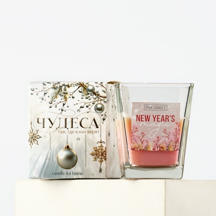 Свеча новогодняя «Новогодняя магия», на Новый год, аромат мед+грейпфрут, 6,8 х 8 см