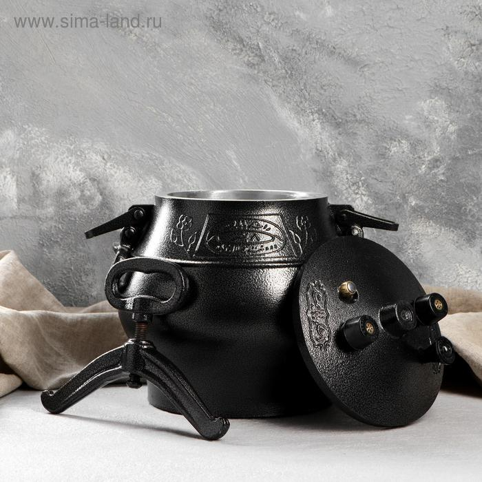 Казан «Традиция», 4 л, крышка-сковорода, литые ручки, антипригарное покрытие, цвет чёрный