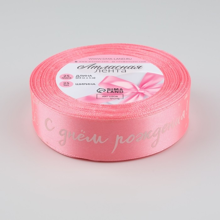 Лента атласная «С Днём Рождения», 25 мм × 23 ± 1 м, цвет розовый №147