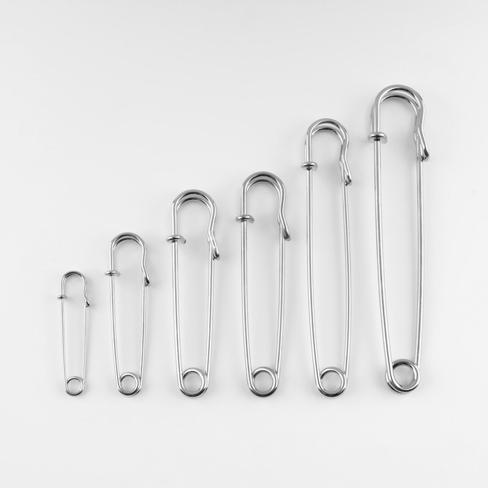 Набор булавок шляпных, 38 / 50 / 63 / 70 / 90 / 100 мм, 6 шт, цвет серебряный