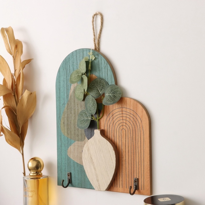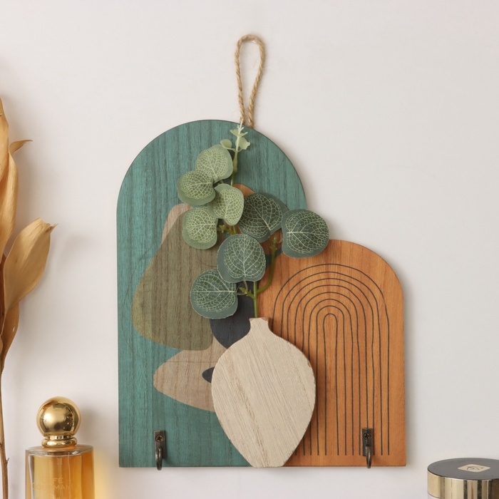 Крючки декоративные дерево "Абстракция. Эвкалипт в вазе" 1,5х19,2х23,3 см