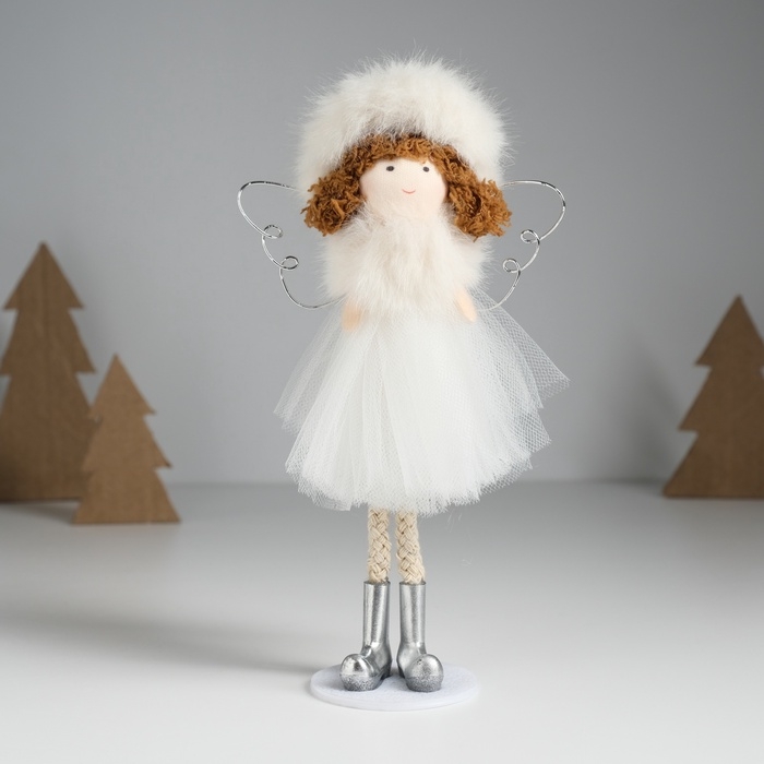 Кукла интерьерная "Ангелочек в мохнатой шапке и шубке" 5,5х8,8х18 см
