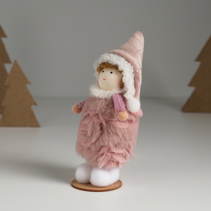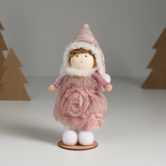 Кукла интерьерная "Девочка в тёплом розовом платьишке" 5,5х5,5х13,5 см