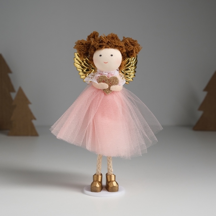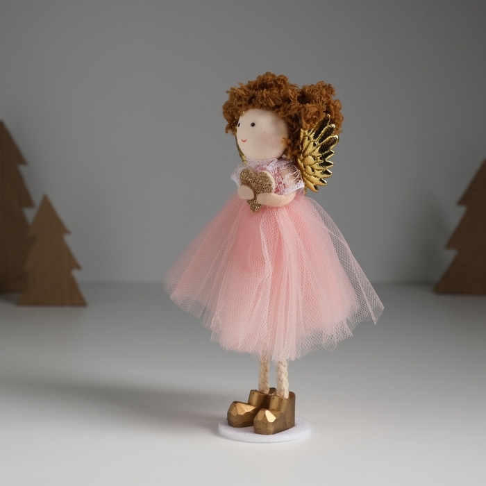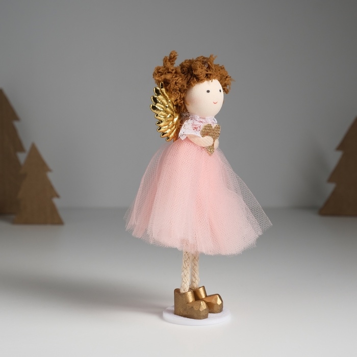 Кукла интерьерная "Ангелочек в розовом платье с крылышками и сердечком" 4х7х14 см