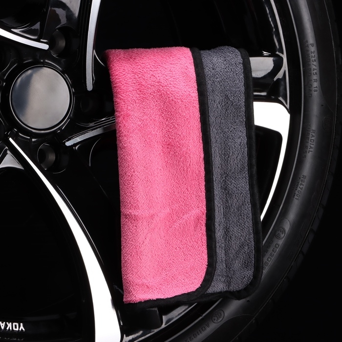 Тряпка для мытья авто, CARTAGE, микрофибра, 400 г/м², 30×40 cм, розово-серая