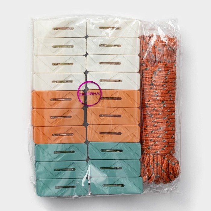 Прищепки бельевые Доляна, 20 шт, верёвка бельевая 13 м, 6,5×2,3 см, ширина низа 3,8 см