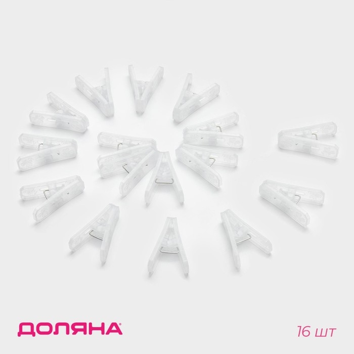 Прищепки бельевые Доляна, 16 шт, 6,5×2 см, ширина низа 4 см