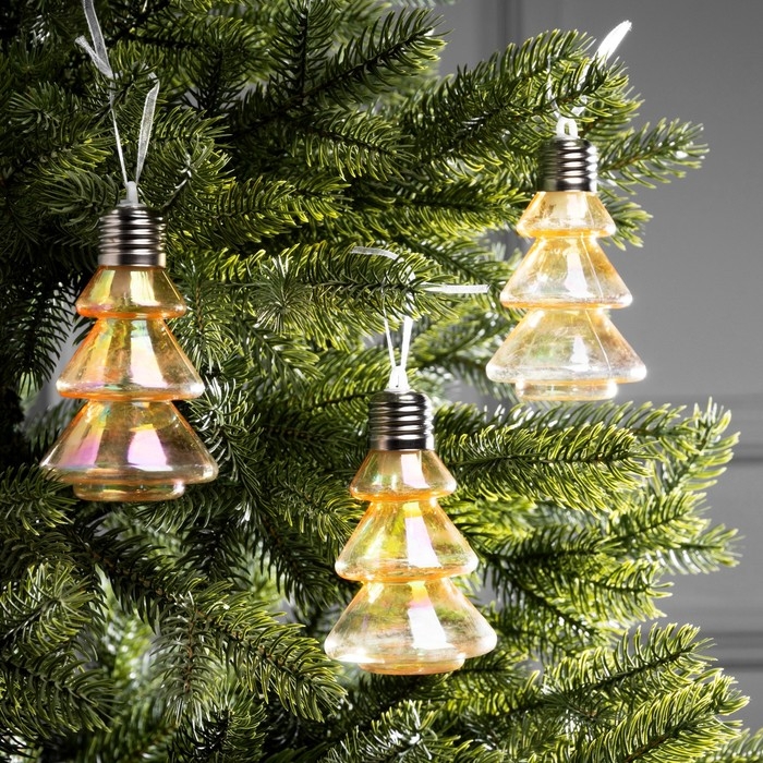 Набор елочных шаров "Елки-конусы", d=10х6 см, 3 LED, 3 шт, батарейки AG13x9 (нет в комплекте), свечение тёплое белое