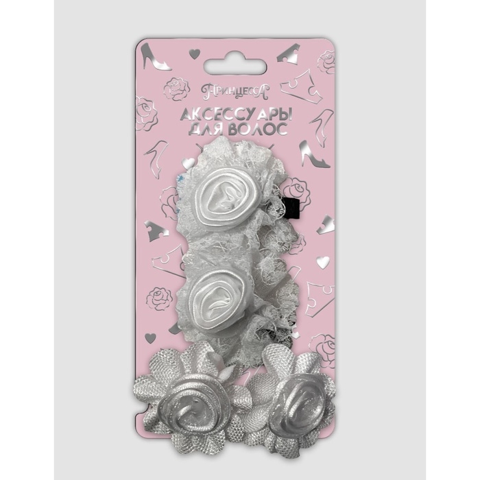 Набор подарочный, бант для волос на резинке 2 шт, заколка зажим для волос 2 шт, Принцессы