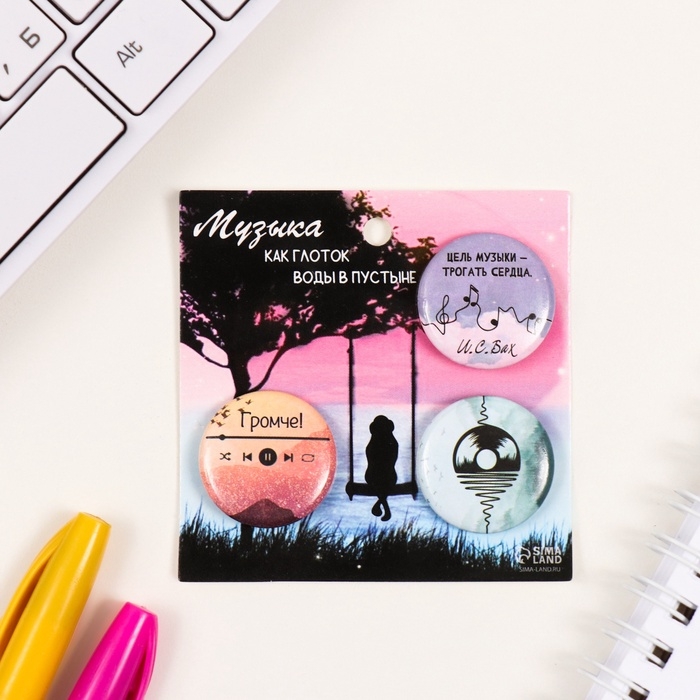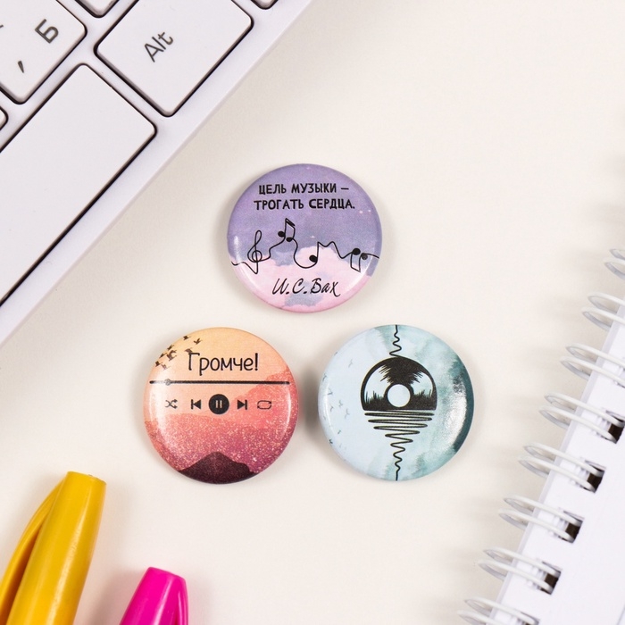 Значки закатные набор 3 шт d=25 мм "Музыка" 7х7 см