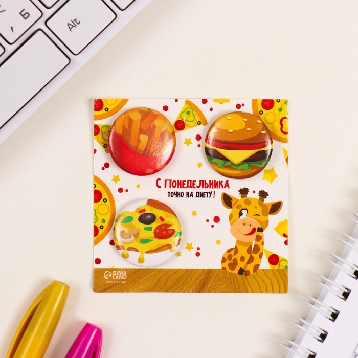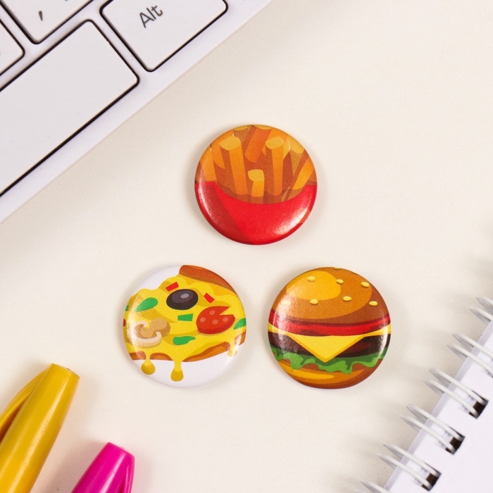 Значки закатные набор 3 шт d=25 мм "Фастфуд" 7х7 см