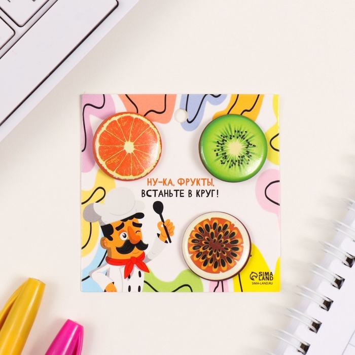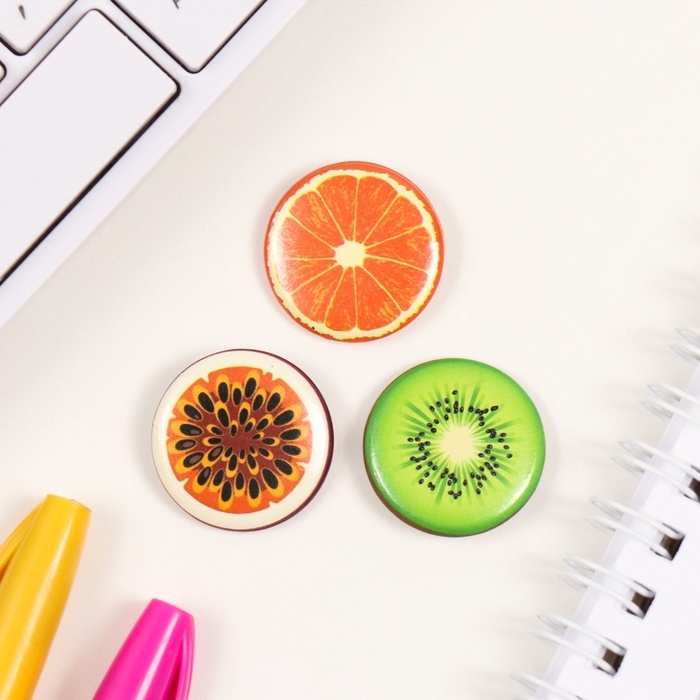 Значки закатные набор 3 шт d=25 мм "Фрукты" 7х7 см