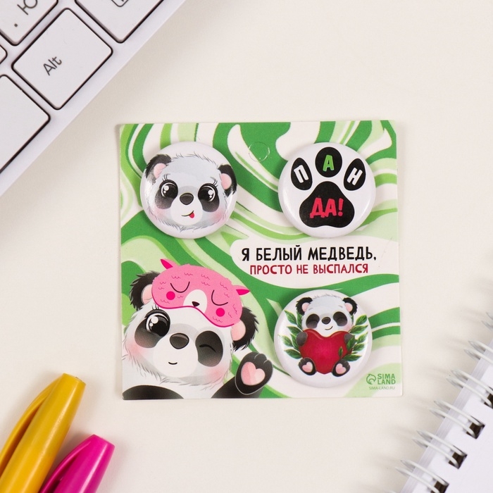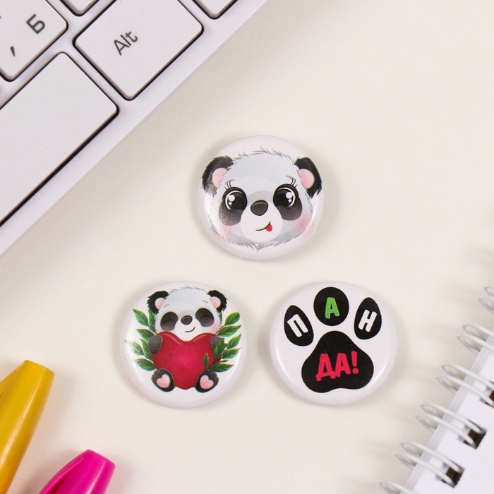 Значки закатные набор 3 шт d=25 мм "Панды" 7х7 см