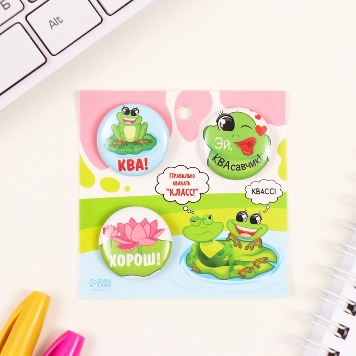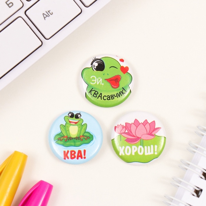 Значки закатные набор 3 шт d=25 мм "Лягушки" 7х7 см