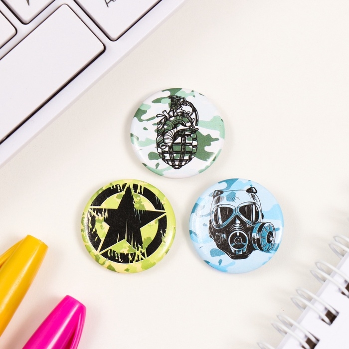 Значки закатные набор 3 шт d=25 мм "Граната" 7х7 см