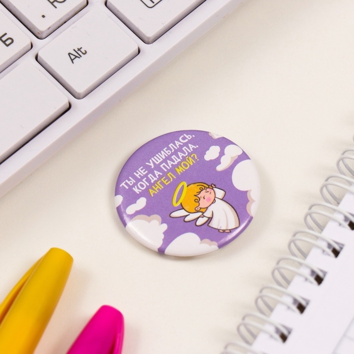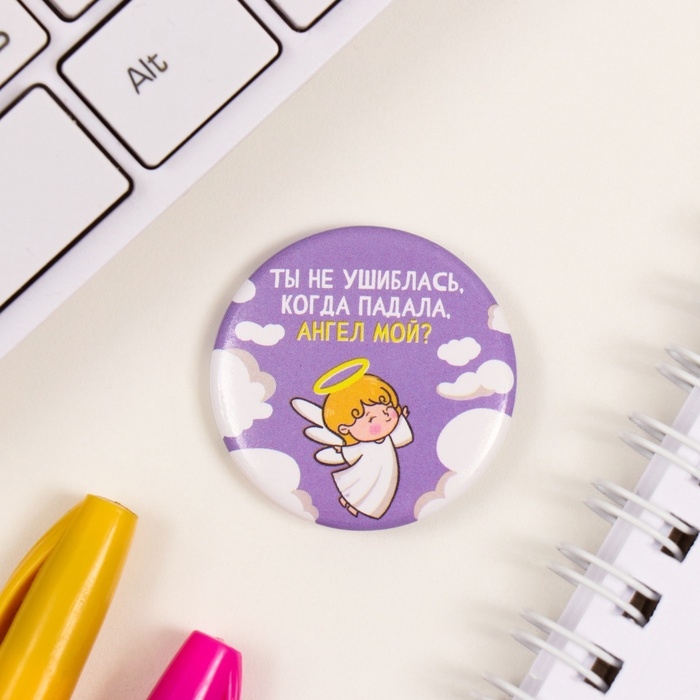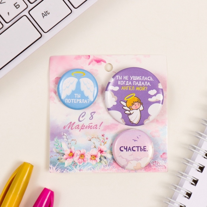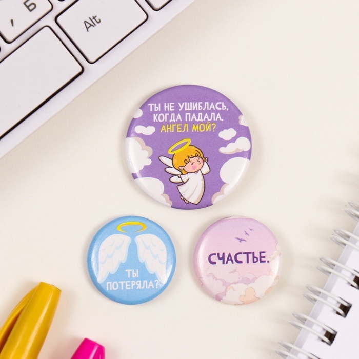 Значки закатные набор 3 шт d=25 мм d=35 мм "Ангел" 7х7 см