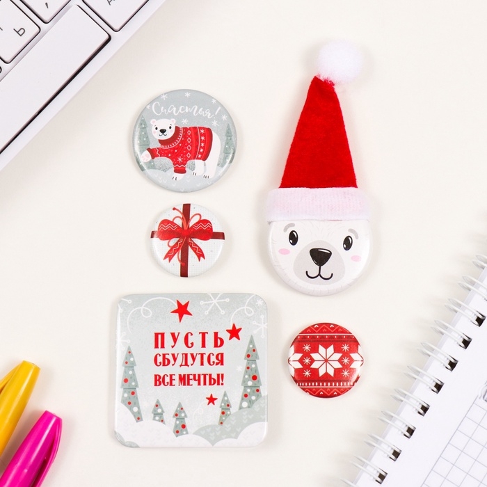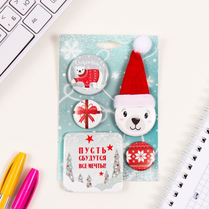 Значки закатные набор 5 шт d=25 мм d=35 мм "Медведь" 8,5х12,5 см