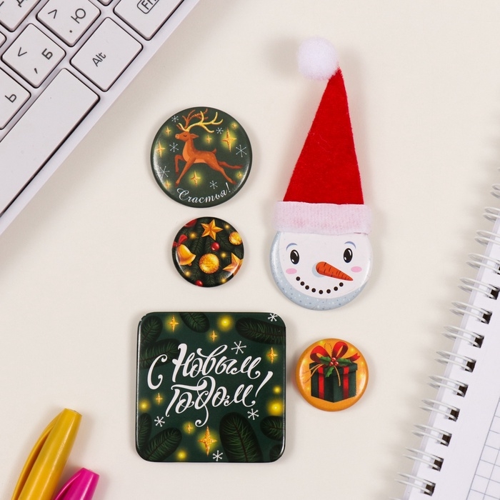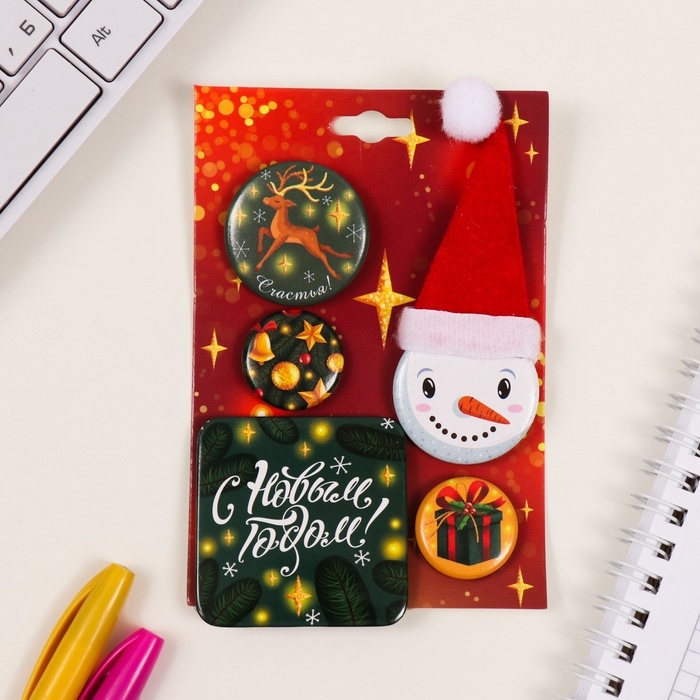 Значки закатные набор 5 шт d=25 мм d=35 мм 50х50мм"Снеговик" 8,5х12,5 см