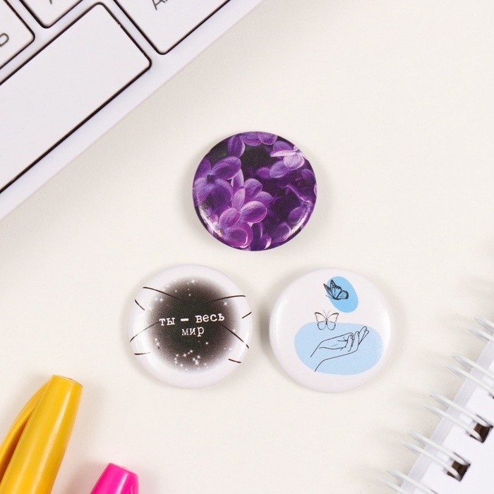 Значки закатные набор 3 шт d=25 мм "Ты - весь мир" 7х7 см