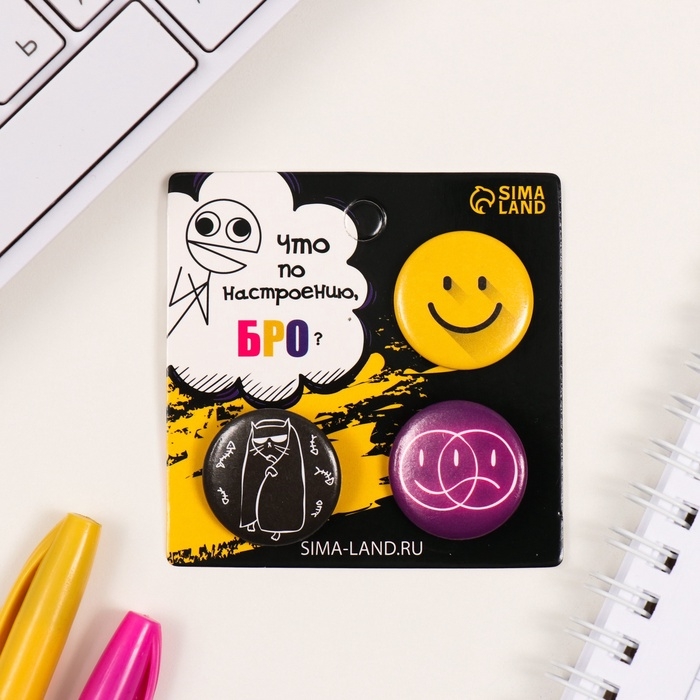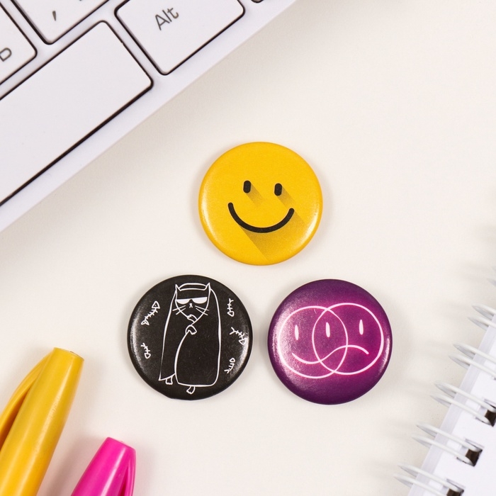 Значки закатные набор 3 шт d=25 мм "Как настроение?" 7х7 см