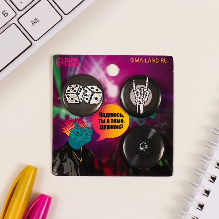 Значки закатные набор 3 шт d=25 мм "Скелет" 7х7 см