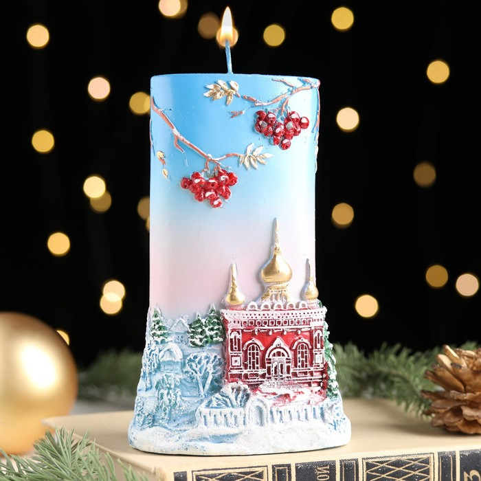 Свеча - цилиндр "Зимняя рябина", 9,5х4х15,5 см
