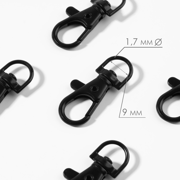 Карабин металлический, 37 × 12 мм / 9 × 1,7 мм, 5 шт, цвет чёрный