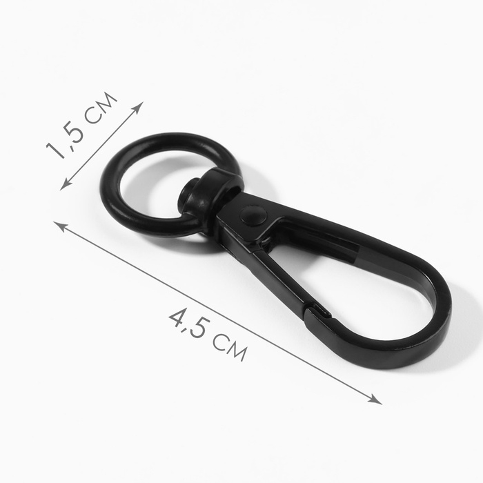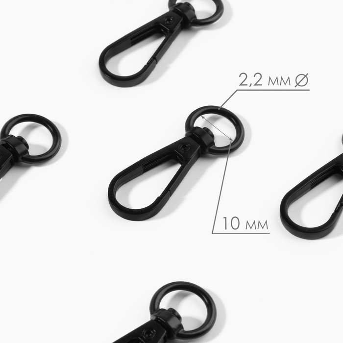 Карабин металлический, 45 × 15 мм / 10 × 2,2 мм, 5 шт, цвет чёрный