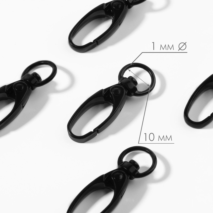 Карабин металлический, 38 × 12 мм / 10 × 1 мм, 5 шт, цвет чёрный