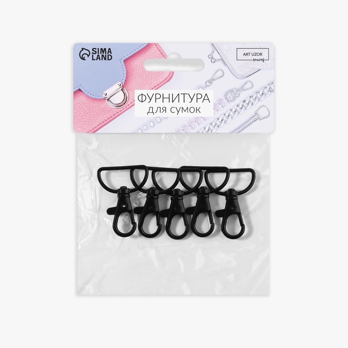 Карабин металлический, 41 × 30 мм / 25 × 2 мм, 5 шт, цвет чёрный