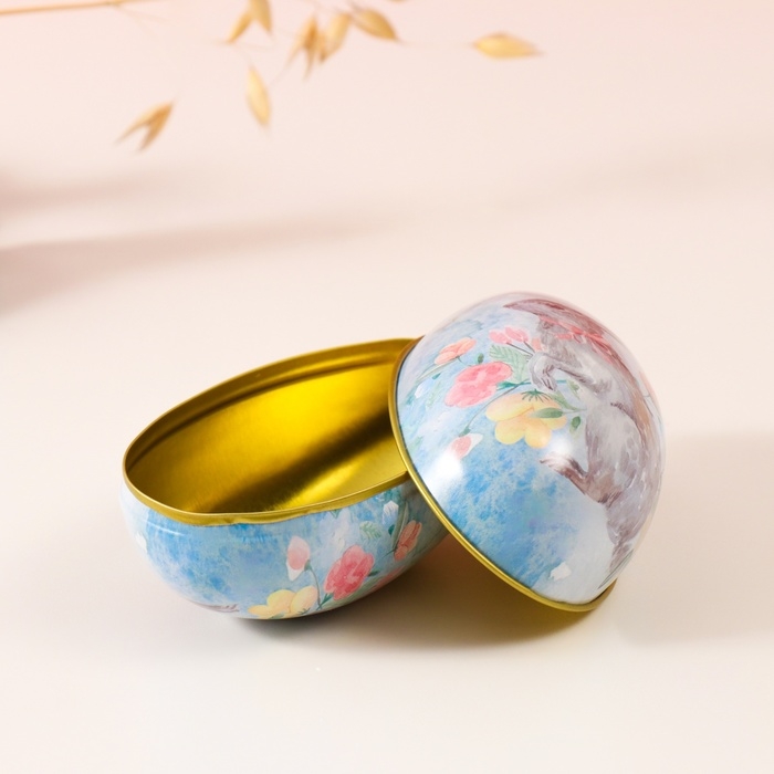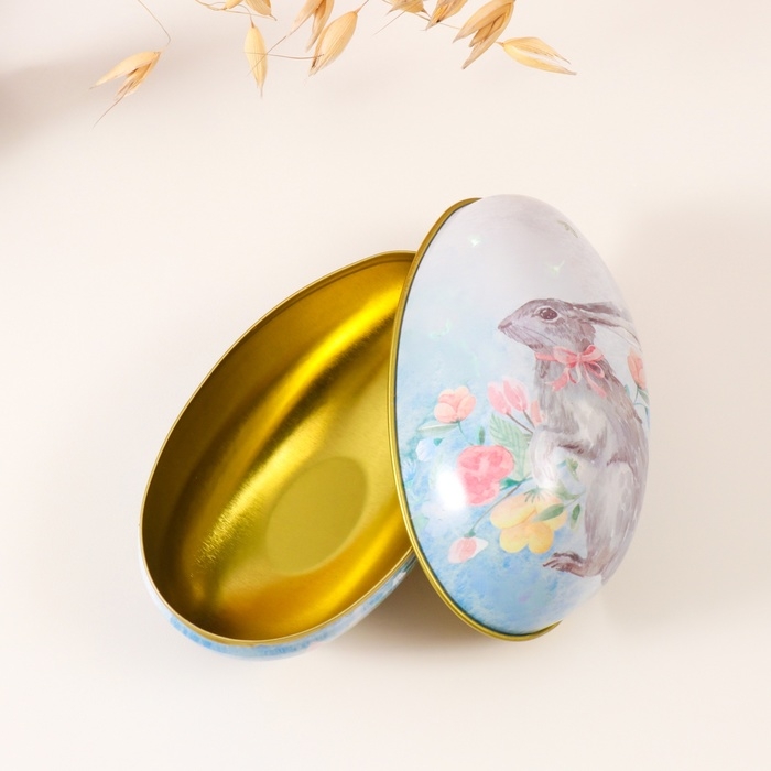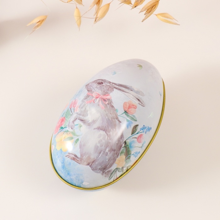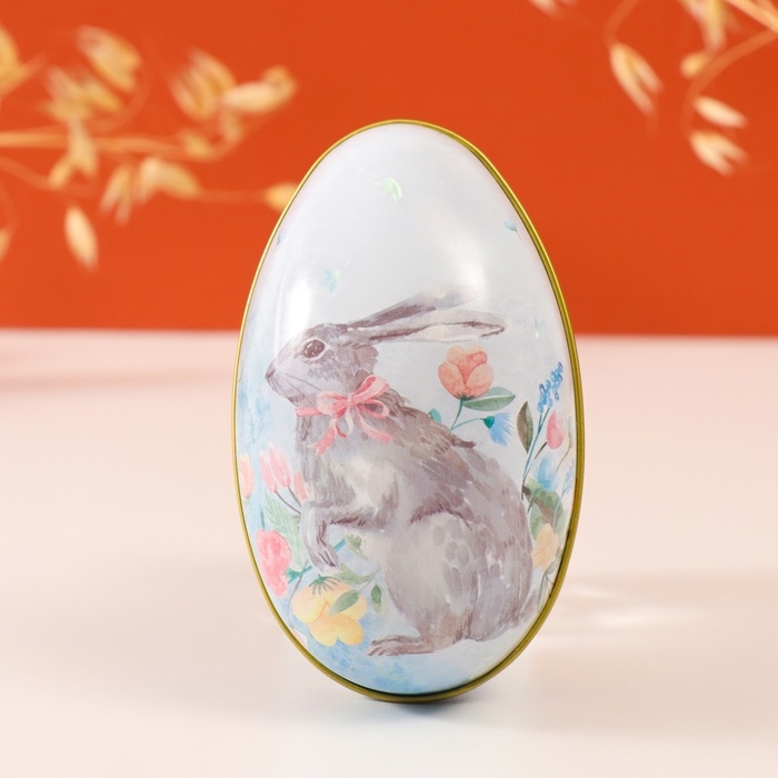 Шкатулка металл яйцо "Пасхальный зайка с бантом в цветах" 7х6,5х11 см