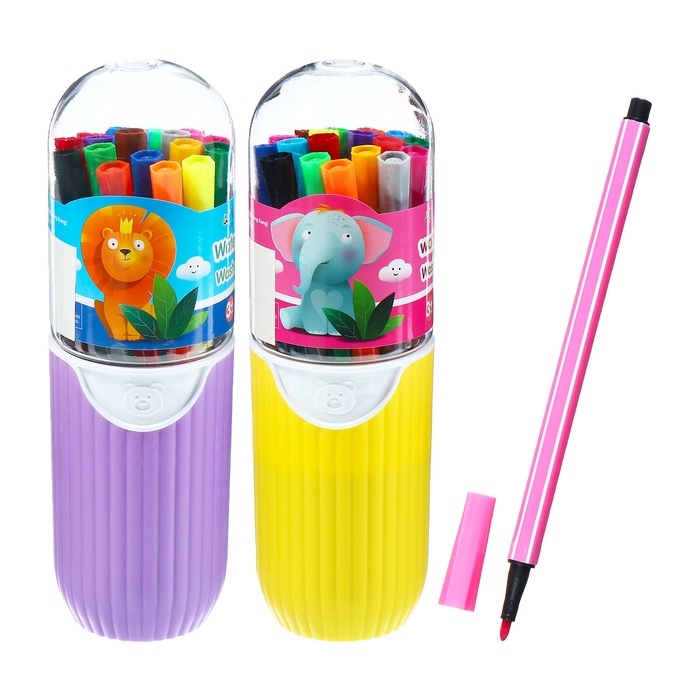 Фломастеры 18 цветов в пластик тубусе вентилируемый колпачок Джунгли
