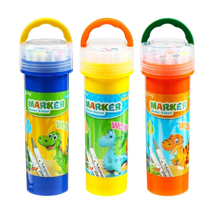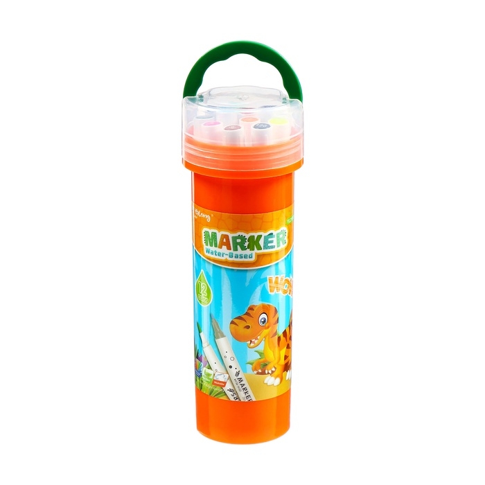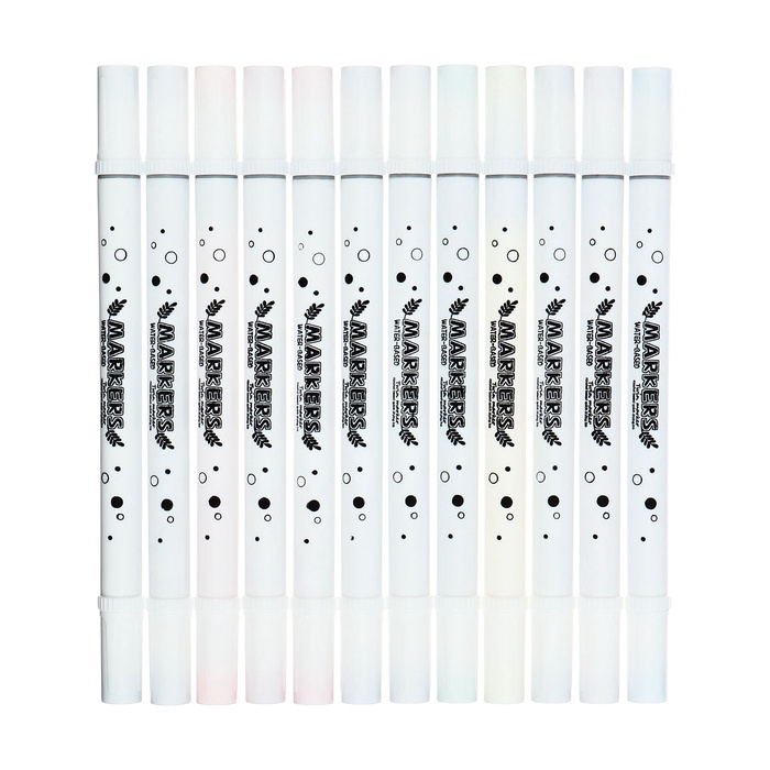 Набор маркеров 12 цветов двусторонние, кистеобр/пулевидн наконечники в пластиковом тубусе