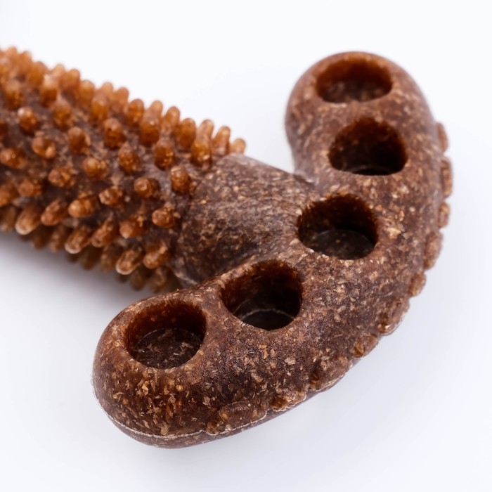 Бамбук: Натуральный и экологически чистый материал, который добавляет прочности игрушке. Он мягче, чем многие другие материалы, что делает его безопасным для зубов собаки и полезным для здоровья десен.
