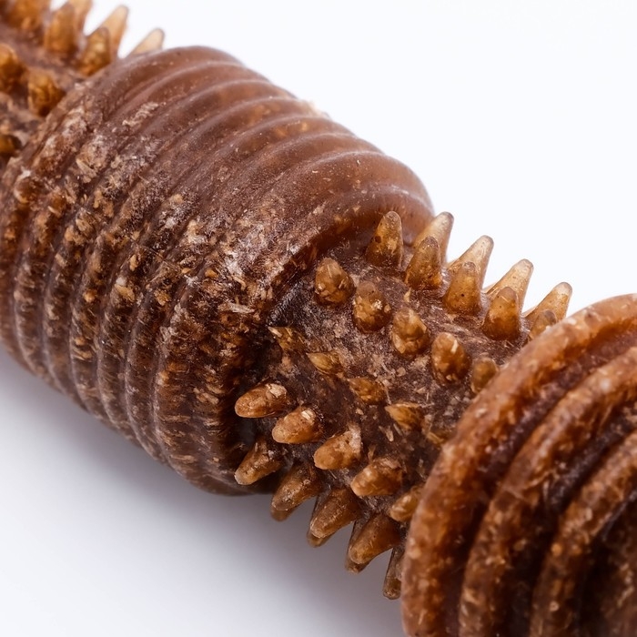 Массажный эффект: Зубцы и текстурированная поверхность "Шипастой кости" создают массажный эффект во время жевания, что стимулирует кровообращение в деснах и способствует очищению зубов от налета.