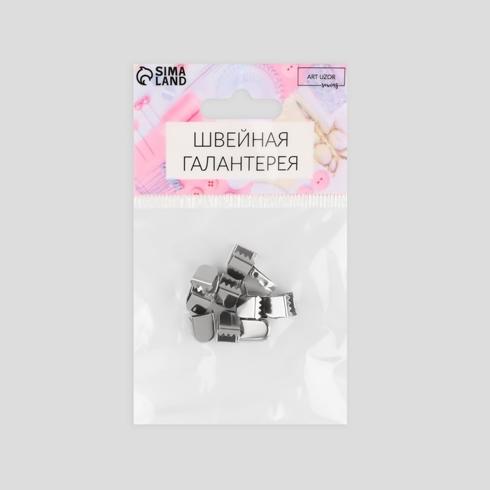 Наконечник-зажим для плоского шнура, 0,6 × 10 мм, 10 шт, цвет серебряный