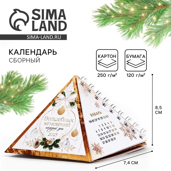 Календарь 2025 настольный треугольный на пружинке «Волшебных мгновений», 7,4х8,5 см