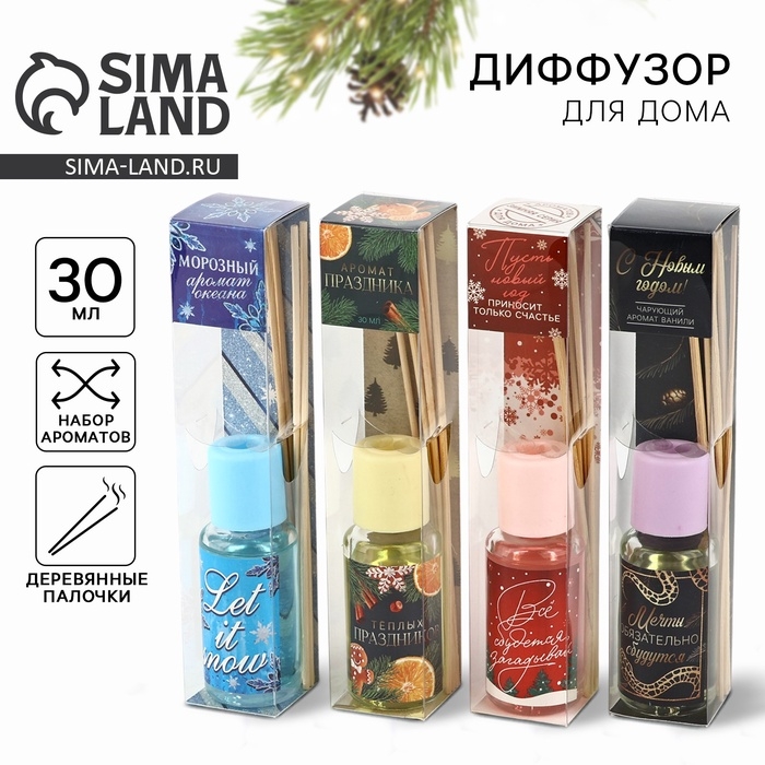 Аромадиффузор ароматический палочки «Новогодняя коллекция: Новогодний», микс, 30 мл.