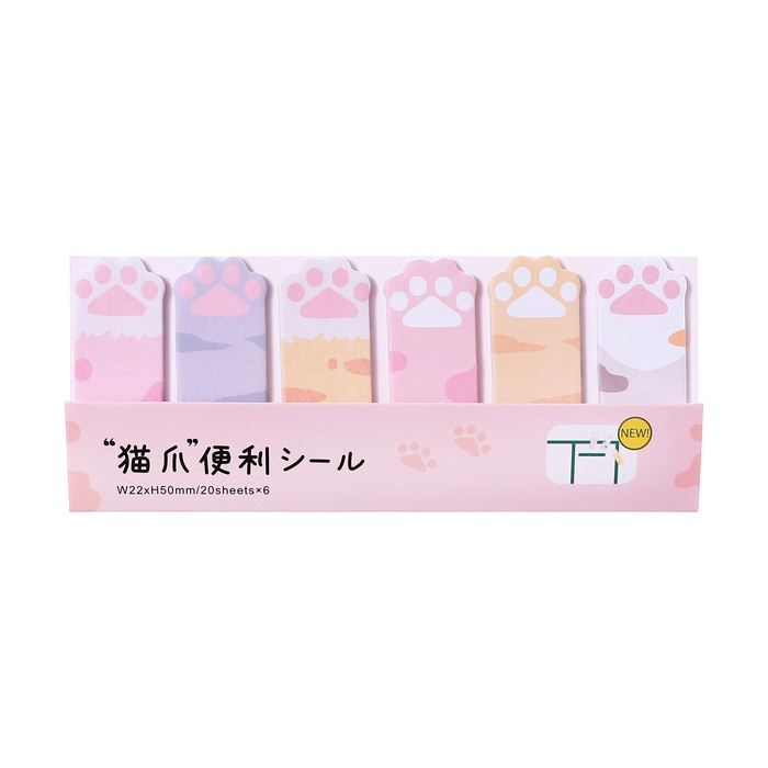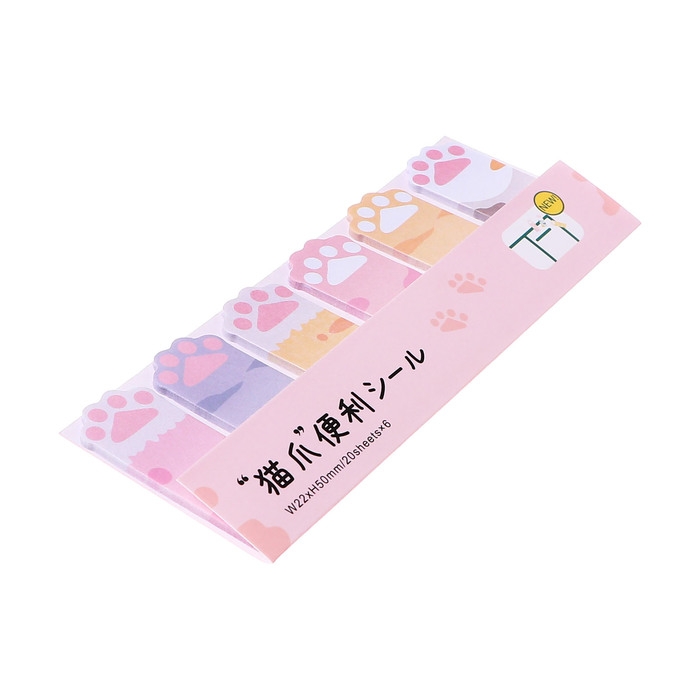 Блок-закладки с липким краем бумага Лапки 20л*6 цветов, 20мм*50мм
