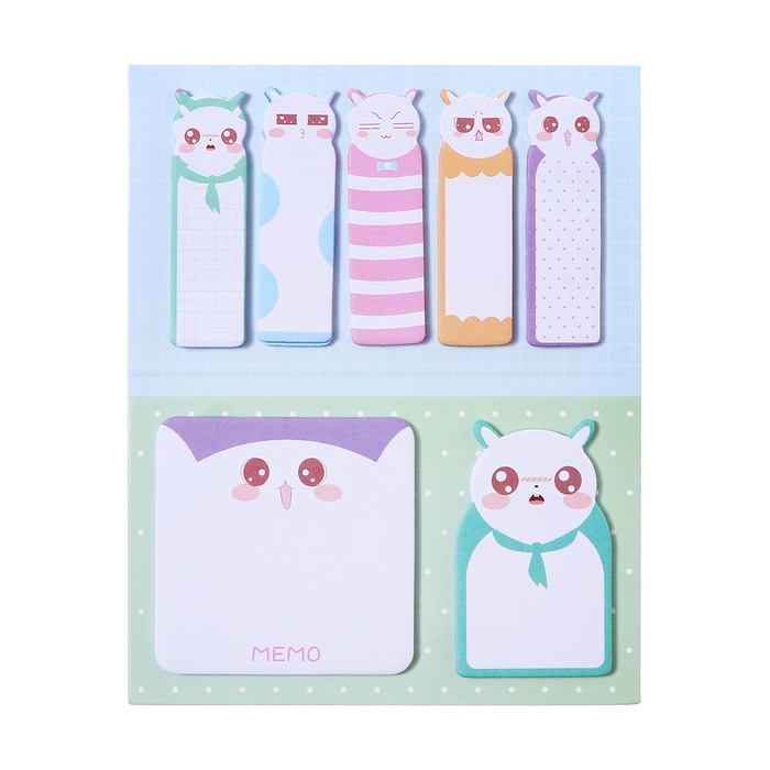 Блок-закладки с липким краем из бумаги, 20л*7 цветов, 57*17мм, 60*60 мм, 57*36мм, Котятки